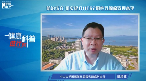 據了解,乳腺癌分為4種亞型:Luminal A、Luminal B、HER2陽性和三陰性乳腺癌。其中HER2陽性乳腺癌約占所有乳腺癌病例的20%-25%,因其預后差的特點,一度被稱為“最兇險的乳腺癌”。面對HER2陽性乳腺癌應該如何預防和治療?如何提升HER2陽性乳腺癌管理水平?中山大學附屬第五醫院乳腺病科主任彭培建教授做客新華網《健康科普進行時》進行作答。