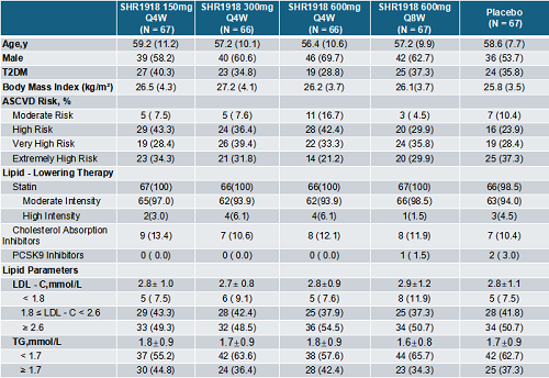 該研究結(jié)果顯示3,SHR-1918在中危及更高風(fēng)險的動脈粥樣硬化性心血管疾病(ASCVD)患者中可同時顯著降低低密度脂蛋白膽固醇(LDL-C)和甘油三酯(TG)水平,且安全性良好,具有進(jìn)一步降低殘余心血管風(fēng)險的潛力。
