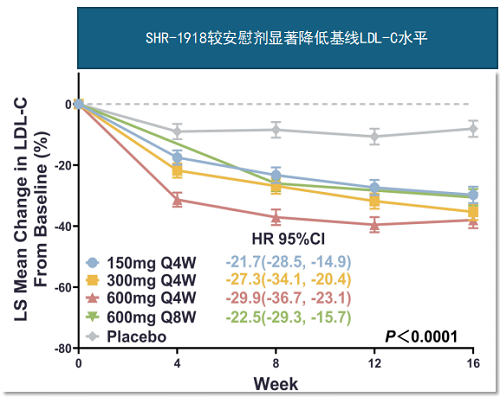 所有患者均接受研究醫(yī)師確定的標(biāo)準(zhǔn)降脂治療。完成16周雙盲治療后,患者進(jìn)入為期36-40周的SHR-1918開放延伸治療期,并進(jìn)行安全性隨訪。