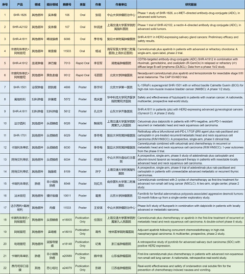 (2025 ASCO恒瑞產(chǎn)品相關研究4項入選口頭報告,5項入選快速口頭報告)