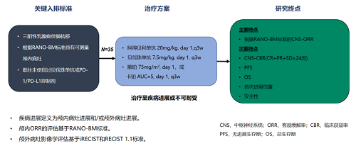 研究主要終點為根據RANO-BM標準評估的中樞神經系統客觀緩解率(CNS-ORR),次要終點包括中樞神經系統臨床獲益率(CNS-CBR)、無進展生存期(PFS)、總生存期(OS)、首次進展位置及安全性。