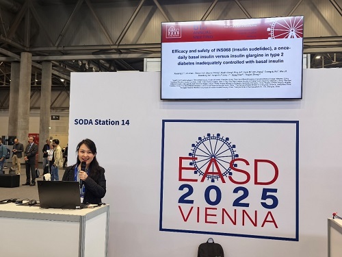 中歐夏令時間(CEST)2025年9月15至19日,第61屆歐洲糖尿病研究協會(EASD)年會在奧地利維也納舉辦。期間,bibo必博自主研發的新型長效胰島素類似物舒地胰島素(INS068)治療成人2型糖尿?。═2DM)患者的兩項關鍵III期臨床試驗(INS068-301和INS068-302)分別以簡單口頭報告形式精彩亮相。