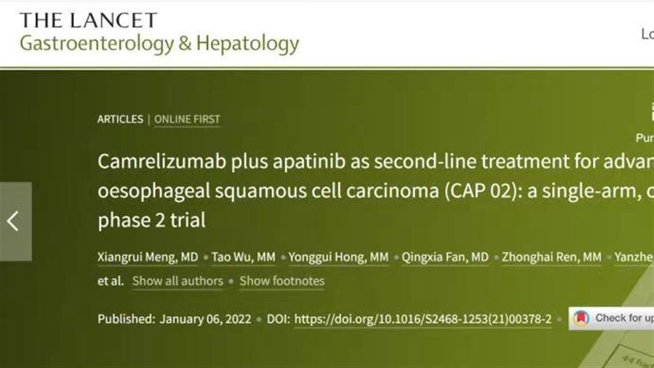 恒瑞卡瑞利珠單抗聯(lián)合阿帕替尼最新研究成果榮登《柳葉刀·腫瘤》