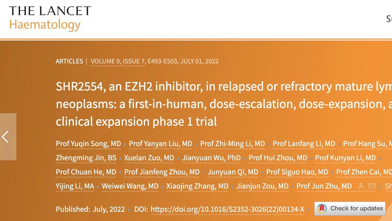 2025 EHA口頭 | 恒瑞創(chuàng)新藥EZH2抑制劑SHR2554在復(fù)發(fā)/難治性外周T細胞淋巴瘤中的關(guān)鍵研究結(jié)果公布