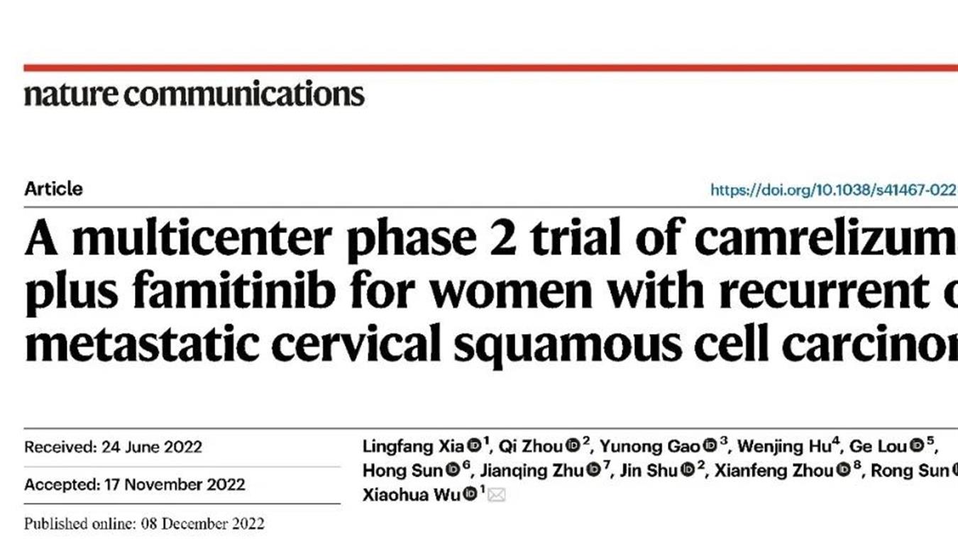 恒瑞創(chuàng)新藥卡瑞利珠單抗聯(lián)合法米替尼用于復(fù)發(fā)或轉(zhuǎn)移性宮頸癌研究結(jié)果榮登JCO